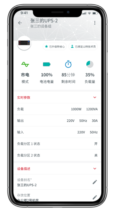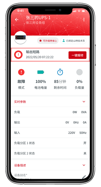 UPS實時參數(shù)讀取電池測試設(shè)置故障提醒,一鍵報修服務(wù)咨詢